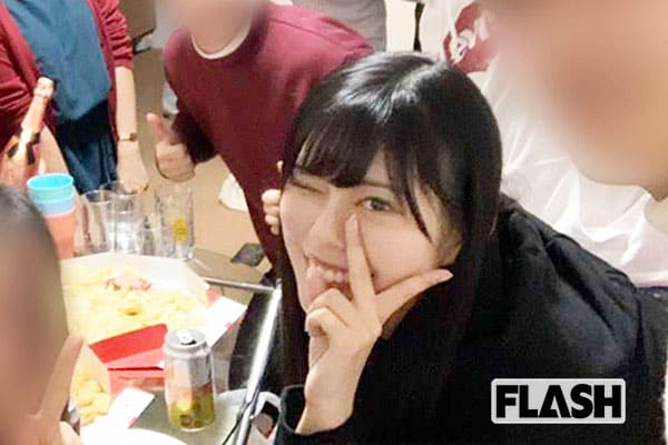 学生と思しき男女約10名が、ピザや菓子を賑やかに囲んでいる。ピースで写っているのは、いま話題のアイドル「豆柴の大群」のメンバー、ナオ・オブ・ナオ(20)だ。